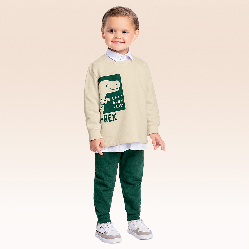 Conjunto em moletom dino peluicado por dentro, calça e blusa em moletom (não acompanha a camisa)